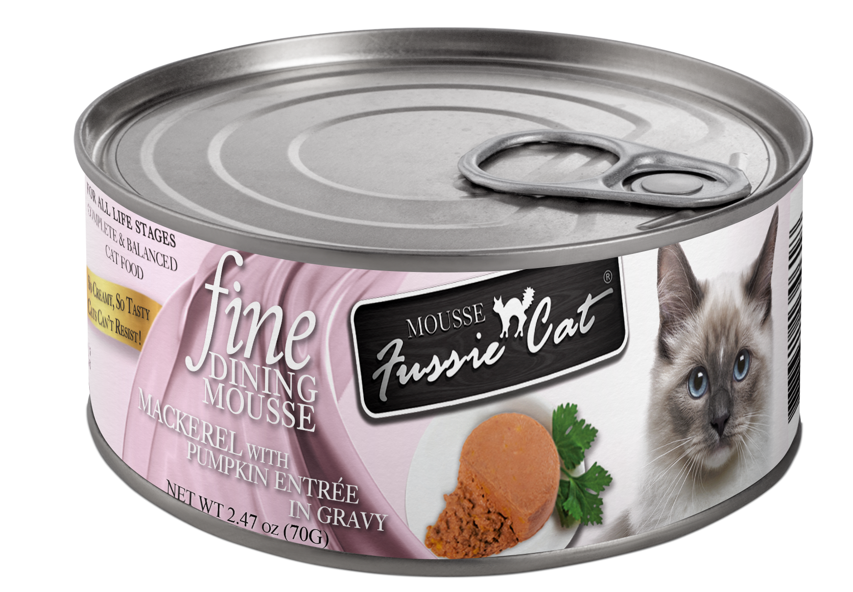 Fussie Cat Dining Mousse Mackerel with Pumpkin in Gravy Cat Food Can