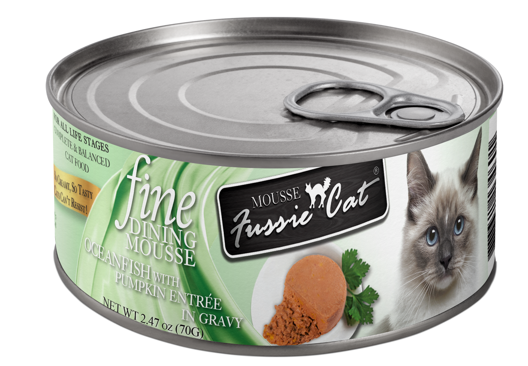 Fussie Cat Dining Mousse Ocean Fish with Pumpkin in Gravy Cat Food Can