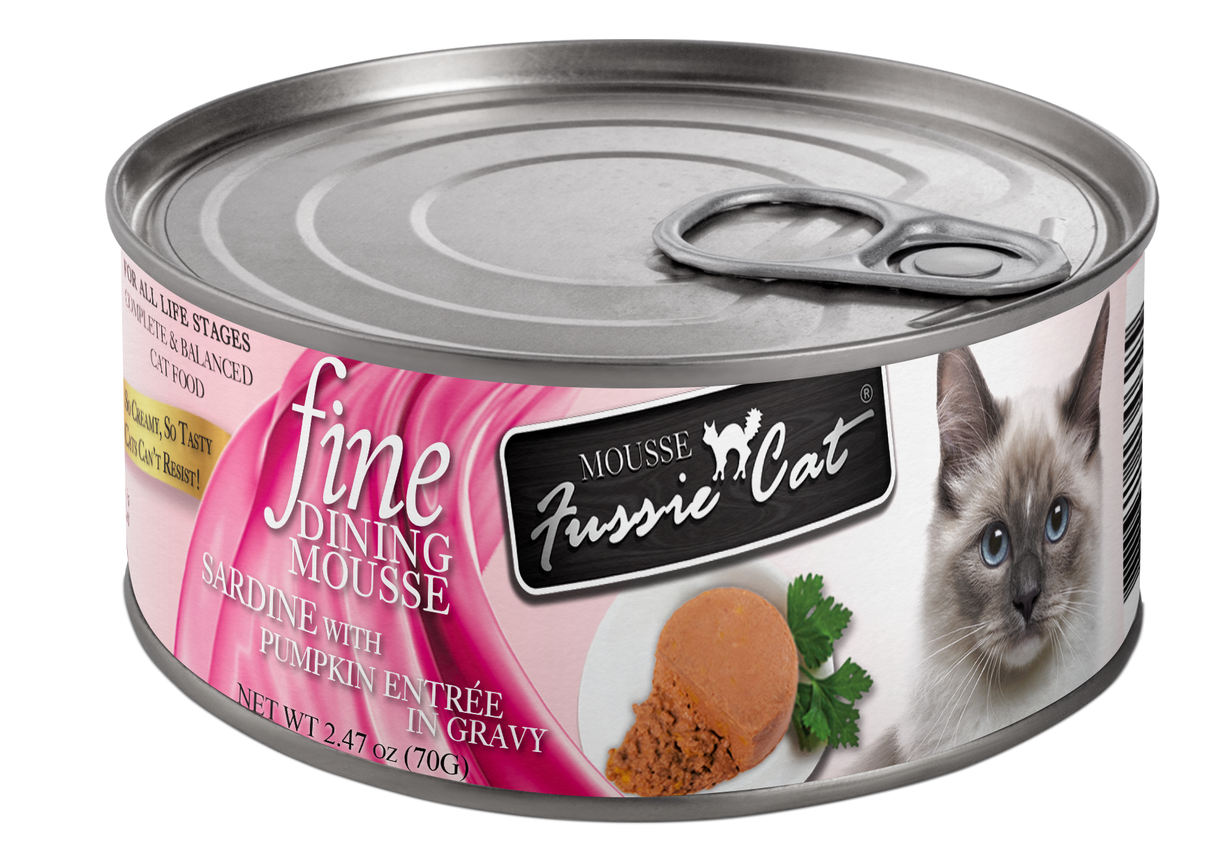 Fussie Cat Dining Mousse Sardines with Pumpkin in Gravy Cat Food Can