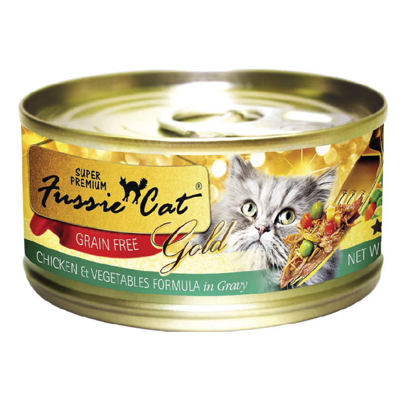 Fussie Cat Premium Chicken with Vegetables in Gravy is specially formulated to help prevent urinary tract infections. It's made with high quality protein and essential fatty acids like Omega 3, which give your feline friend healthy skin and a shiny coat. Also, rich in DHA for healthy eye and brain development. Fussie Cat Premium Chicken with Vegetables in Gravy Canned Cat Food also includes carrots, potatoes and green peas, an excellent source of vitamins, minerals and beta-carotene.