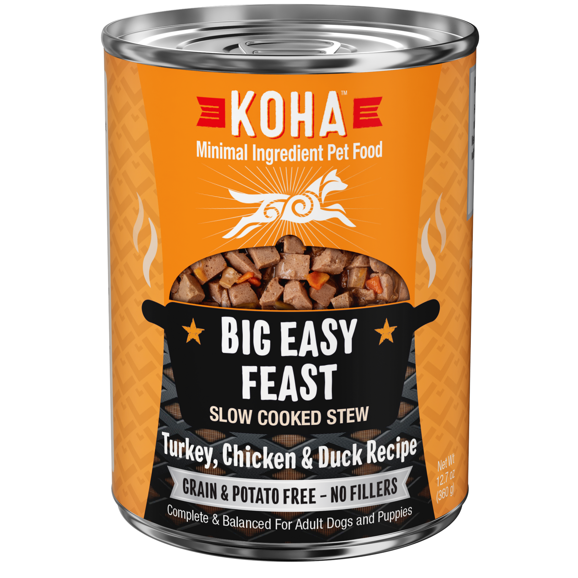 KOHA Big Easy Feast Slow Cooked Stew provides a nutritious high-quality protein combination that is grain, potato, and carrageenan free. Bring the New Orleans party right to your dog¡¯s bowl with the delicious mix of turkey, chicken and duck. Feed as a complete and balanced meal or as a topper.